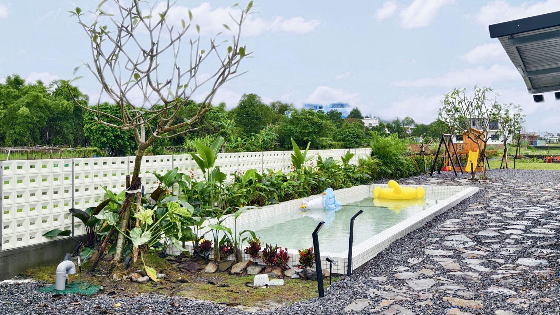 周邊擁有許多適合全家同遊的親子景點,本館有多項親子友善設施——戶外泳池、生態池、盪鞦韆與安全寬敞的遊憩空間,讓孩子能在自然中奔跑、探索,把日子慢下來。